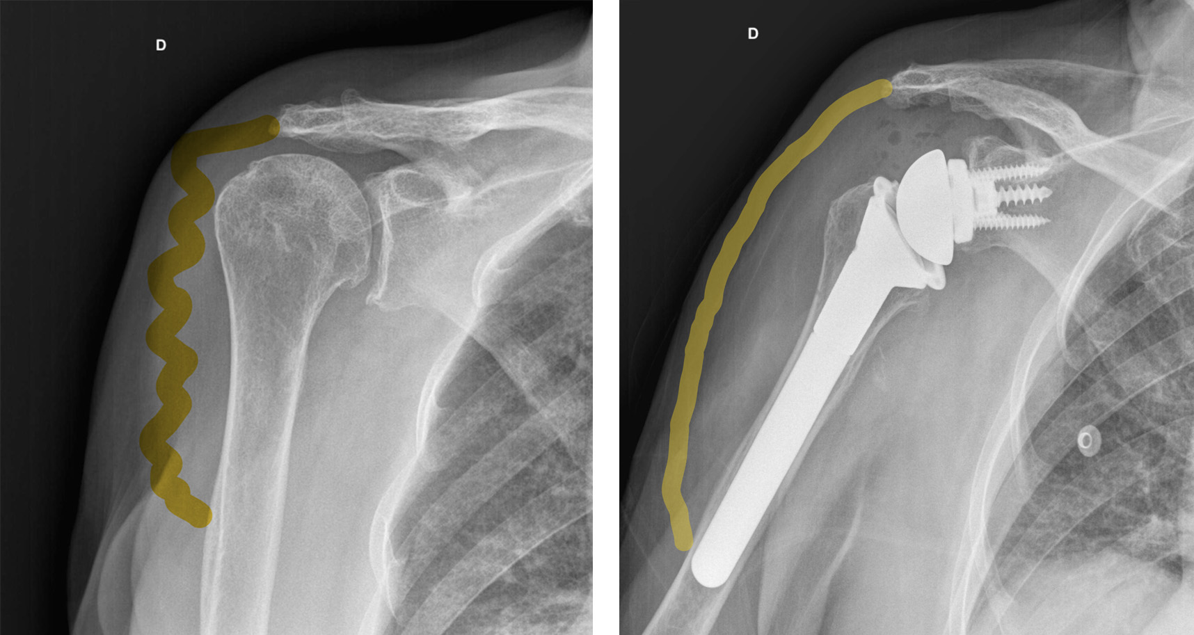 Numa artroplastia total de ombro normal ou “anatómica”, a cabeça do úmero e a glenoide são substituídas de modo a imitar a anatomia e a mecânica natural da articulação do ombro.