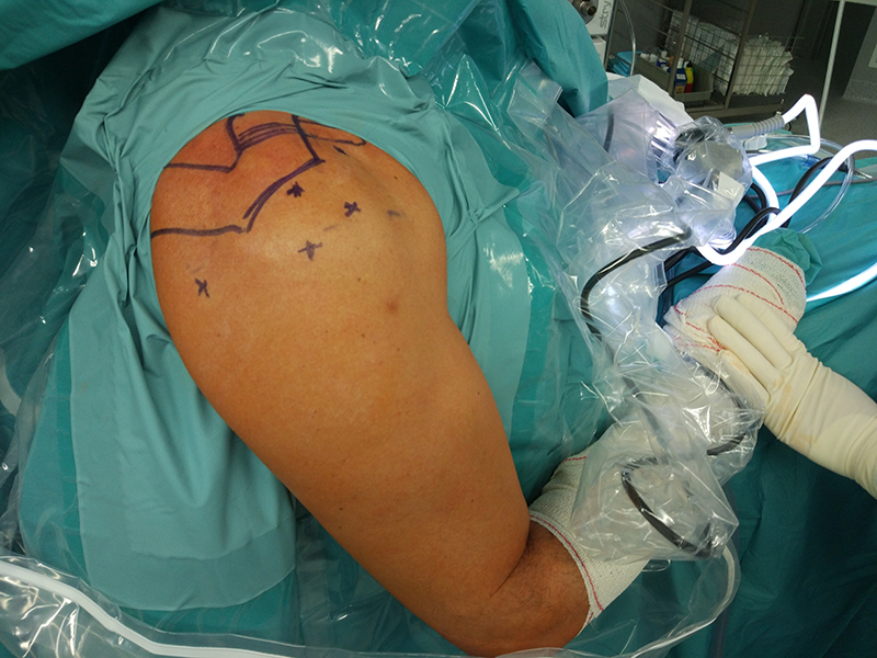 Permite fazer a reparação da coifa através de cirurgia minimamente invasiva através de pequenas incisões na pele que são portais por onde se utilizam instrumentos de trabalho e uma câmara para visualizar o interior da articulação. (Fig. 6)