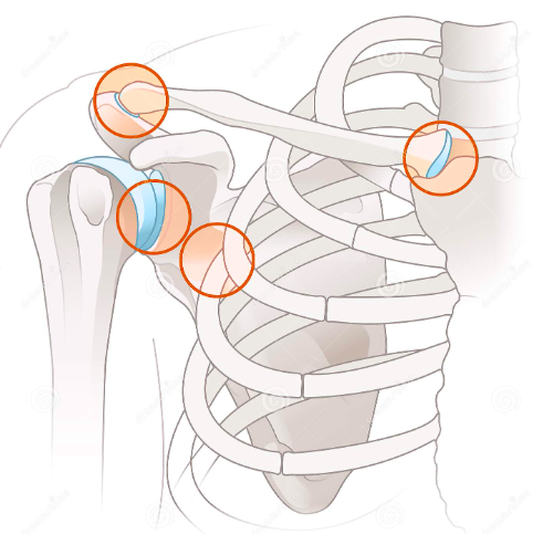 O ombro é um complexo conjunto de articulações (glenoumeral, e escapulotorácica, acromioclavicular e esternoclavicular) que são responsáveis pela grande amplitude de movimento característica da articulação do ombro e que é fundamental para execução das atividades fundamentais do nosso dia a dia. (Fig. 1)